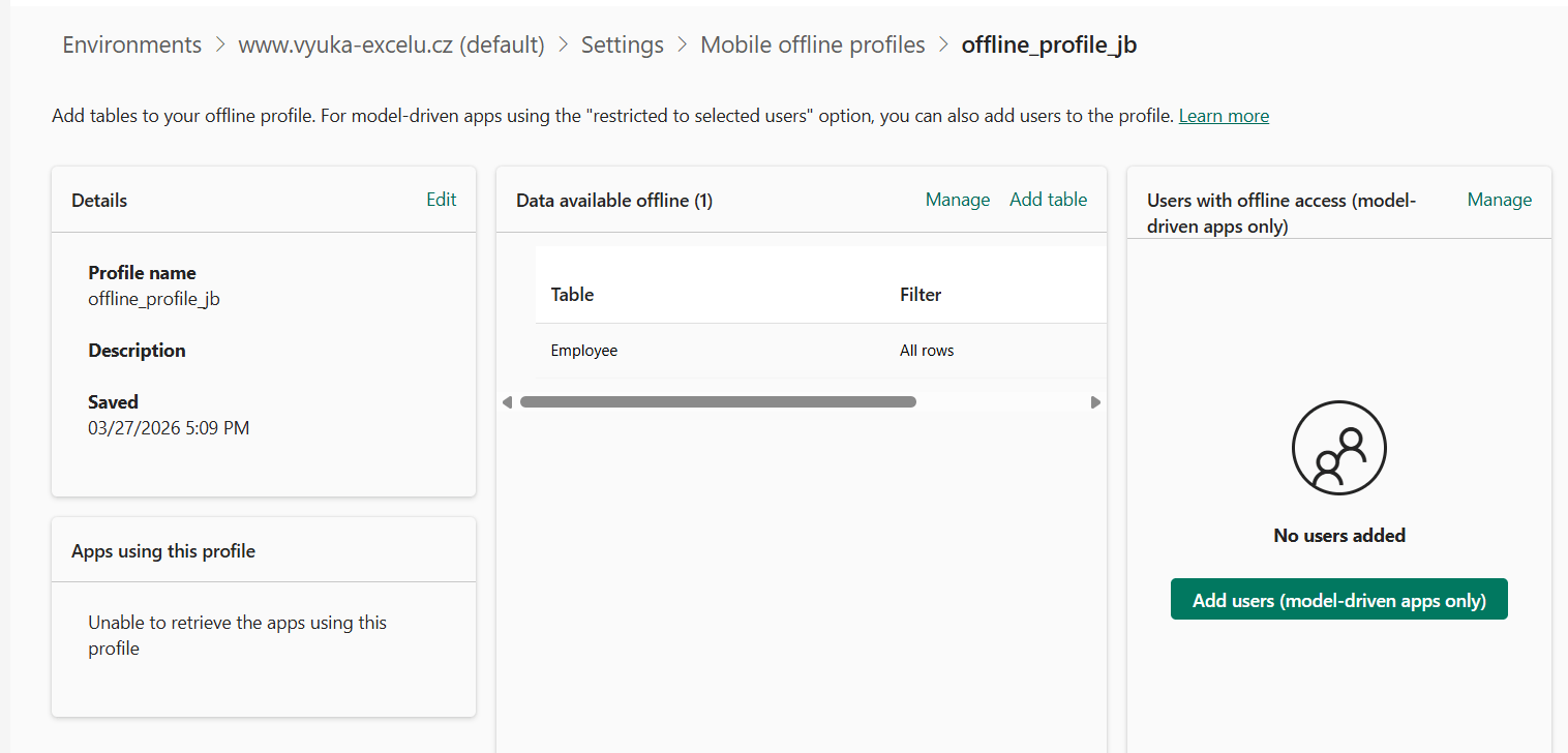 Power Apps mohou pracovat v čátečném offline režimu.